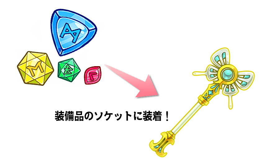ルーンは装備品のソケットという穴に装着することで装備品の性能をさらに引き出し、自分好みにカスタマイズできるよ。