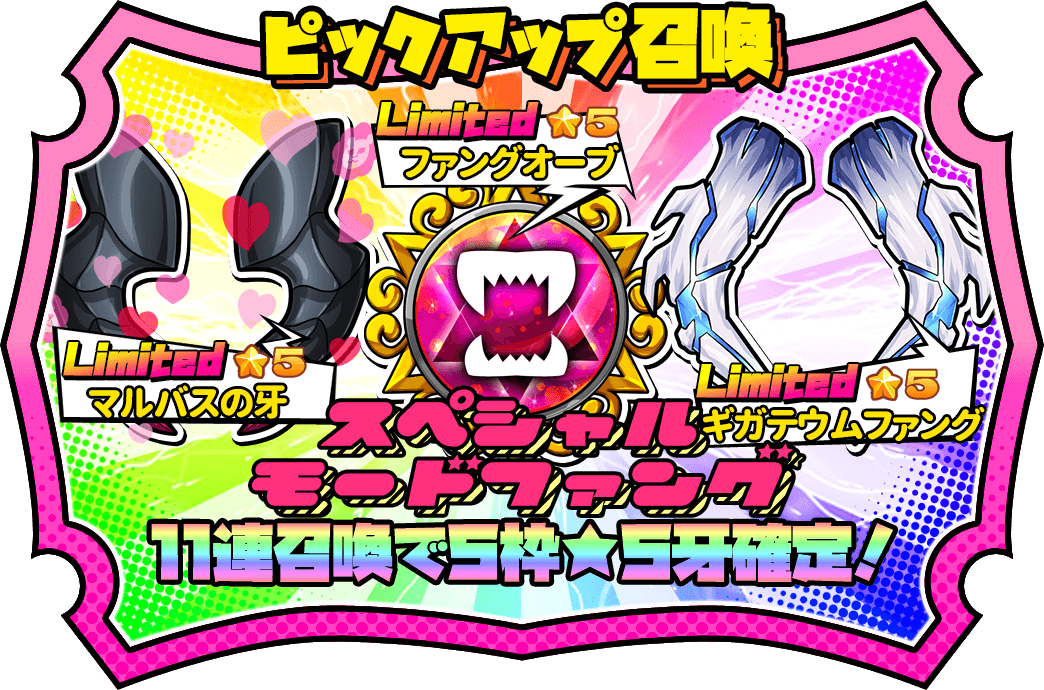 ・スペシャルモードファングでは11連召喚で☆5牙が5枠確定!