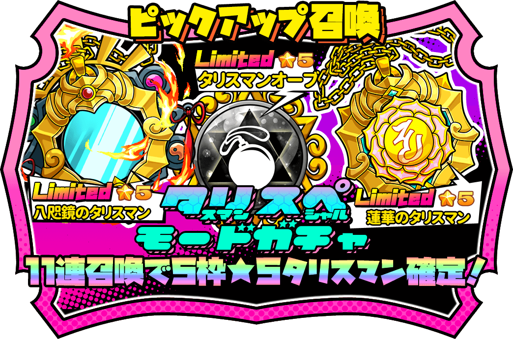 ・タリスマンスペシャルモードでは11連召喚で☆5タリスマンが5枠確定!