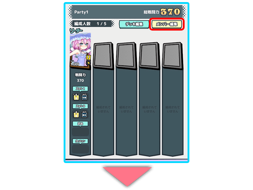 (保存されたメンバー全てが売却などで消失した場合はデッキが未設定の状態に戻ります。)