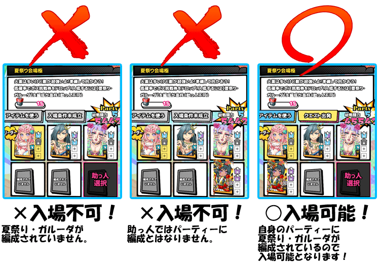 入場条件 | 夏祭り・ガルーダ編成 |