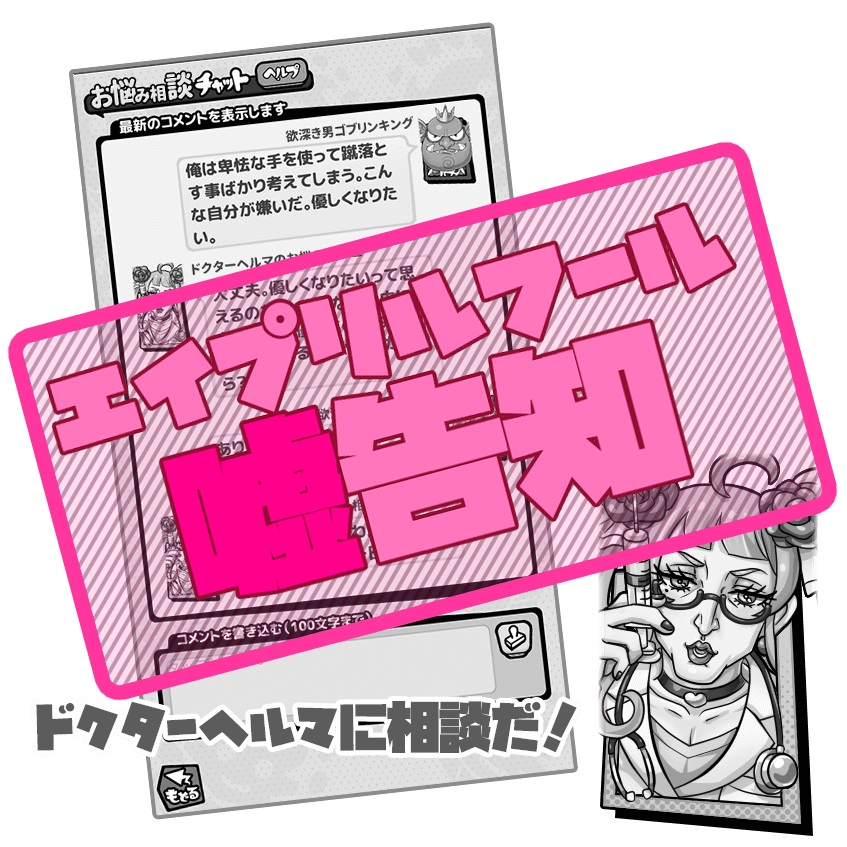 新チャットコンテンツ・新種族(乙女)モンスター・新タイトル画面 に関しましては、エイプリルフールでの告知となり、実装予定はございません。