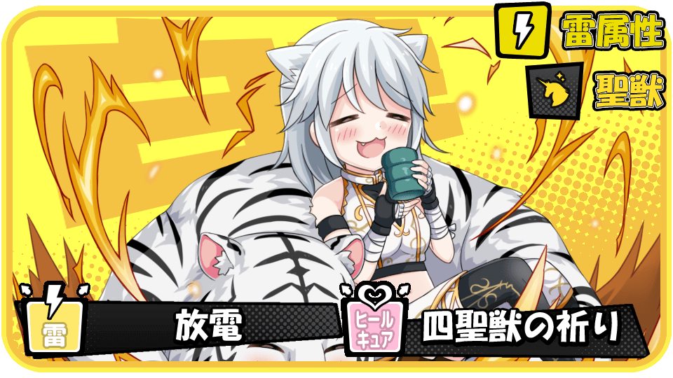白虎が所持しているスキル「放電」は全体雷属性攻撃のスキルとなります。