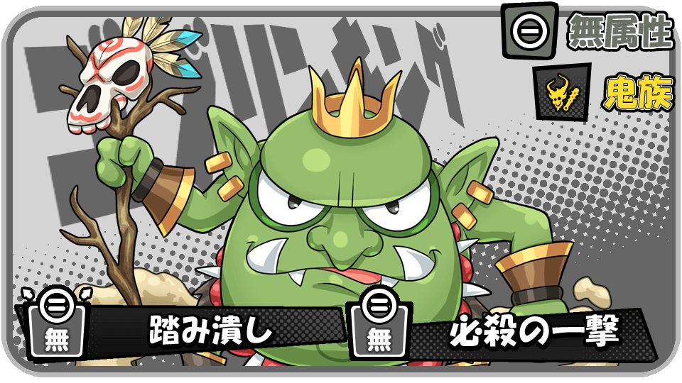 ゴブリンキングが所持しているスキル「踏み潰し」は全体無属性攻撃のスキルとなります。